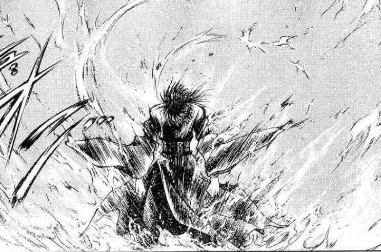 Finalmente, el miembro de Tatsu deja en el suelo a los miembros de la Segunda División, y se va enfundando su nodachi