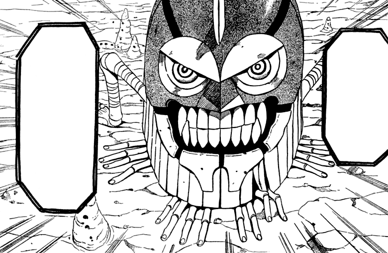 El irritante shinobi comienza a caminar en dirección a Gohan mientras hace sonar sus nudillo, pero Gohan hace levantar cuatro paredes de roca que aprisionan a Kyōki , que luego cierra en la parte superior con una quinta y con el Elemento Tierra: Movimientos Tectónicos hunde la prisión al fondo de la tierra