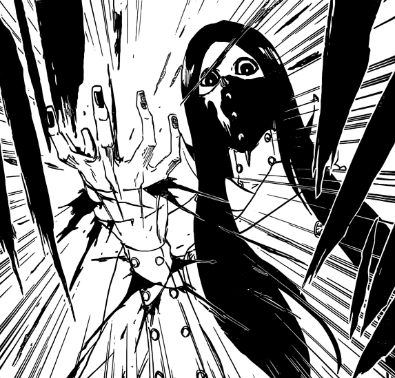 Ohatsu da la vuelta cuando de repente Toketsu y Akane salen de la nube de humo y la atacan con sus uñas y bisento, pero ella se percata y usa a sus marionetas para detenerlos usando a Ira para frenar el Bisento de Toketsu y Envidia para detener las garras de Akane